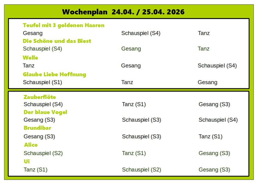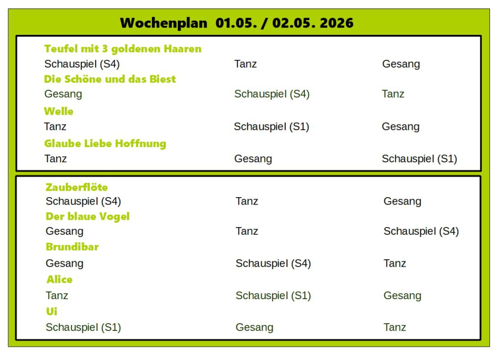 a) Praktische Unterstützung von Aktivitäten, die über den Rahmen des angebotenen Unterrichtes der Pegasus-Theaterschule hinausgehen, insbesondere bei der Erarbeitung, Umsetzung und Aufführung künstlerischer Projekte.